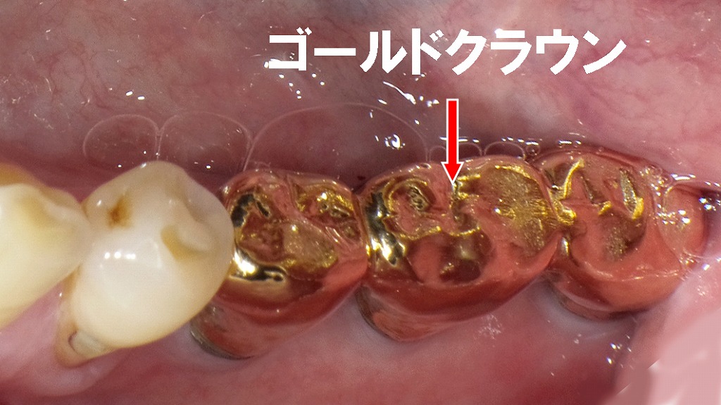 - 欠損していた左下6番部に、**インプラント上部構造として金合金クラウン(ゴールドクラウン)**を装着しました。